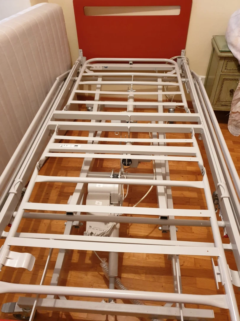 Cama articulada con colchón de látex en muy buen estado, sólo 15 días de uso de todo el conjunto, articulada en todos los movimientos y elevada con barandilla de seguridad plegable.